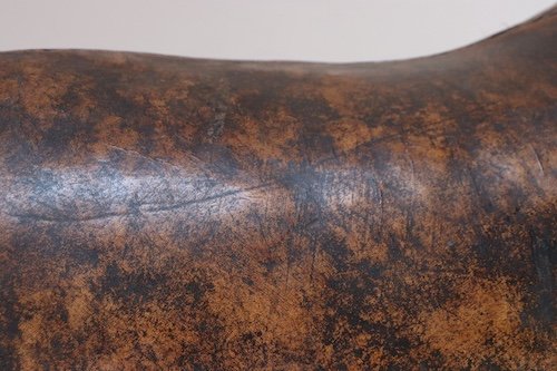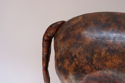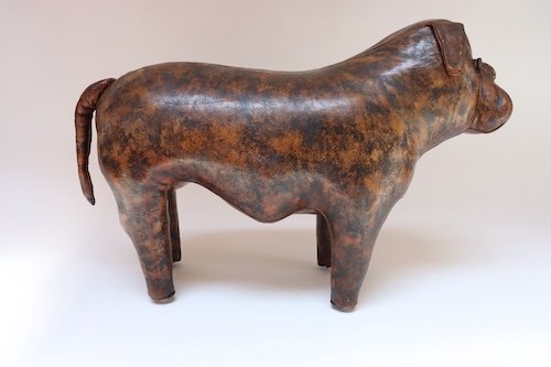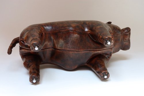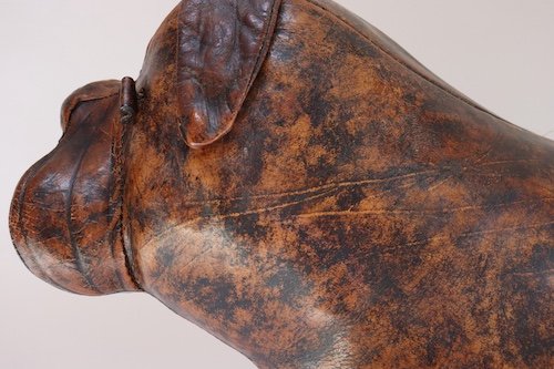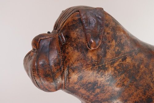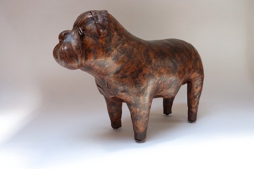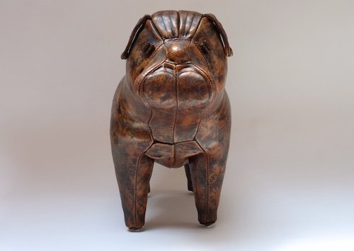 Charming leather bulldog sculpture/ottoman by Dimitri Omersa for Abercrombie and Fitch (ca. 1960s, England).