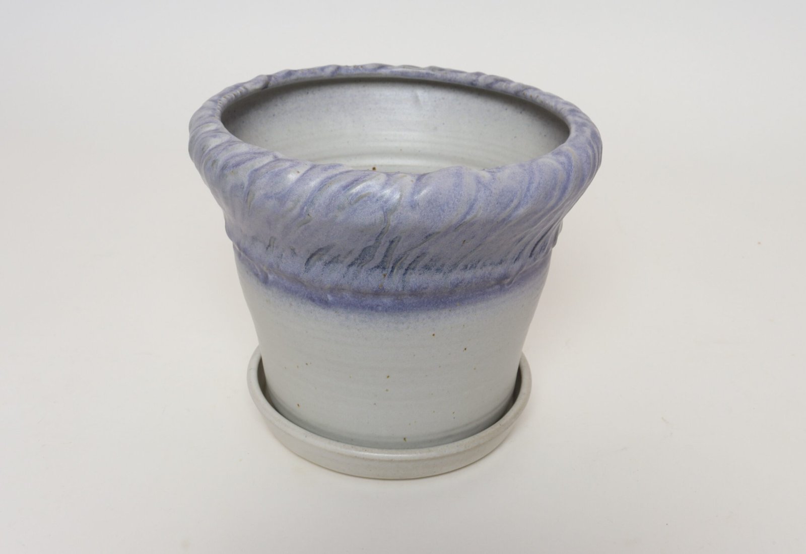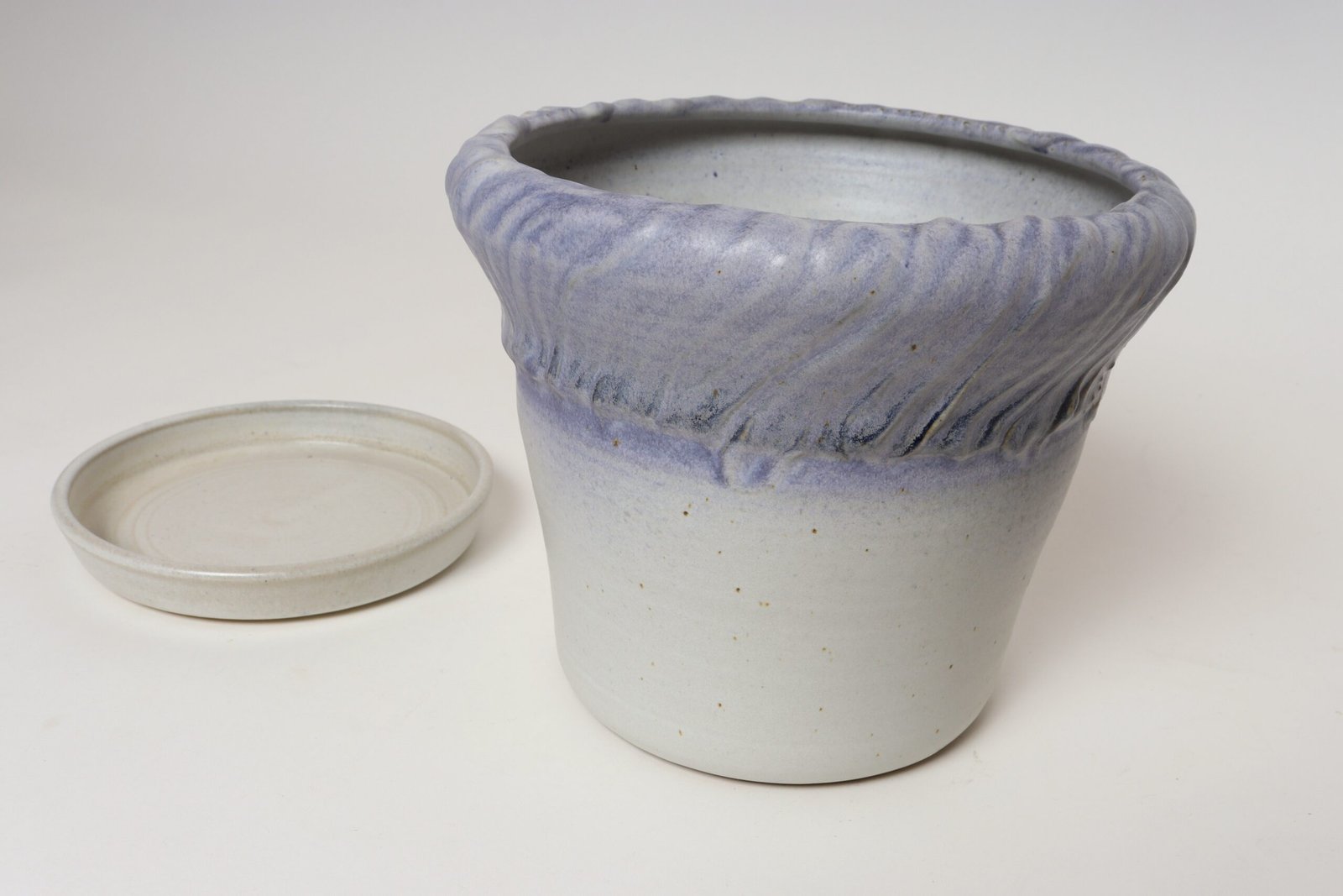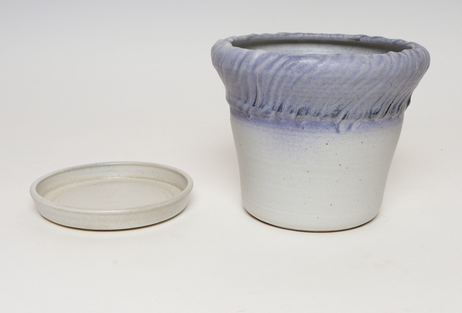 Vintage Lilac and Pale Gray Studio Ceramic Planter with Plate by Deanna Nichols