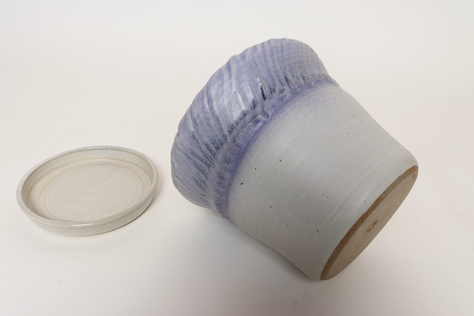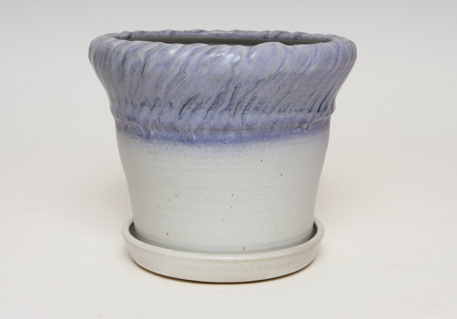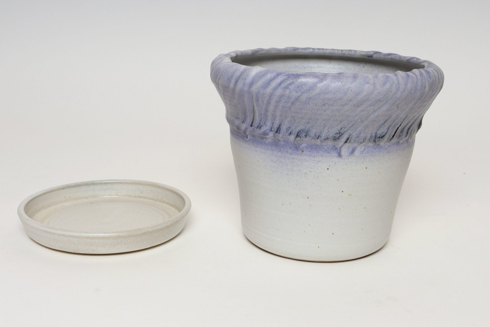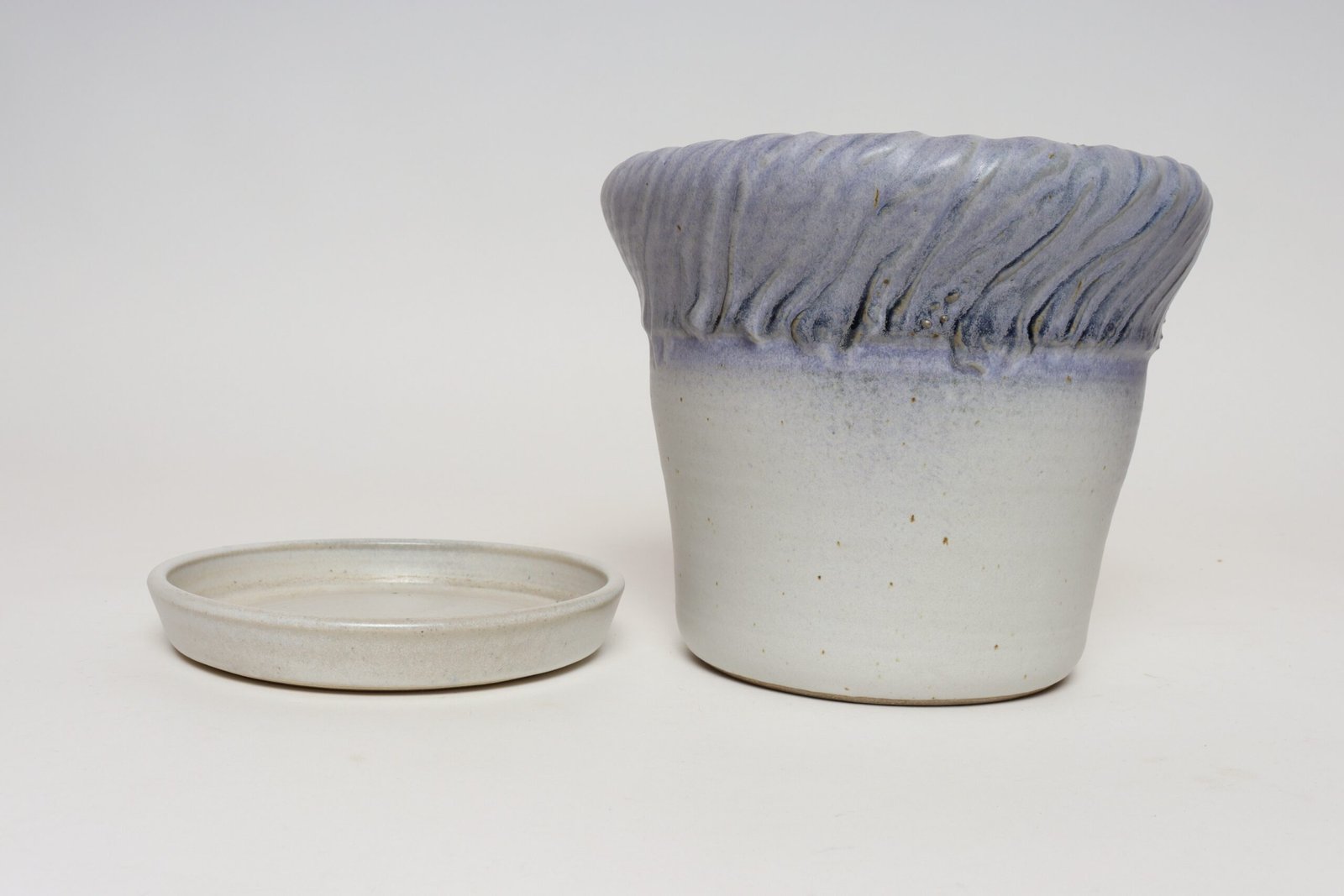 Vintage Lilac and Pale Gray Studio Ceramic Planter with Plate by Deanna Nichols