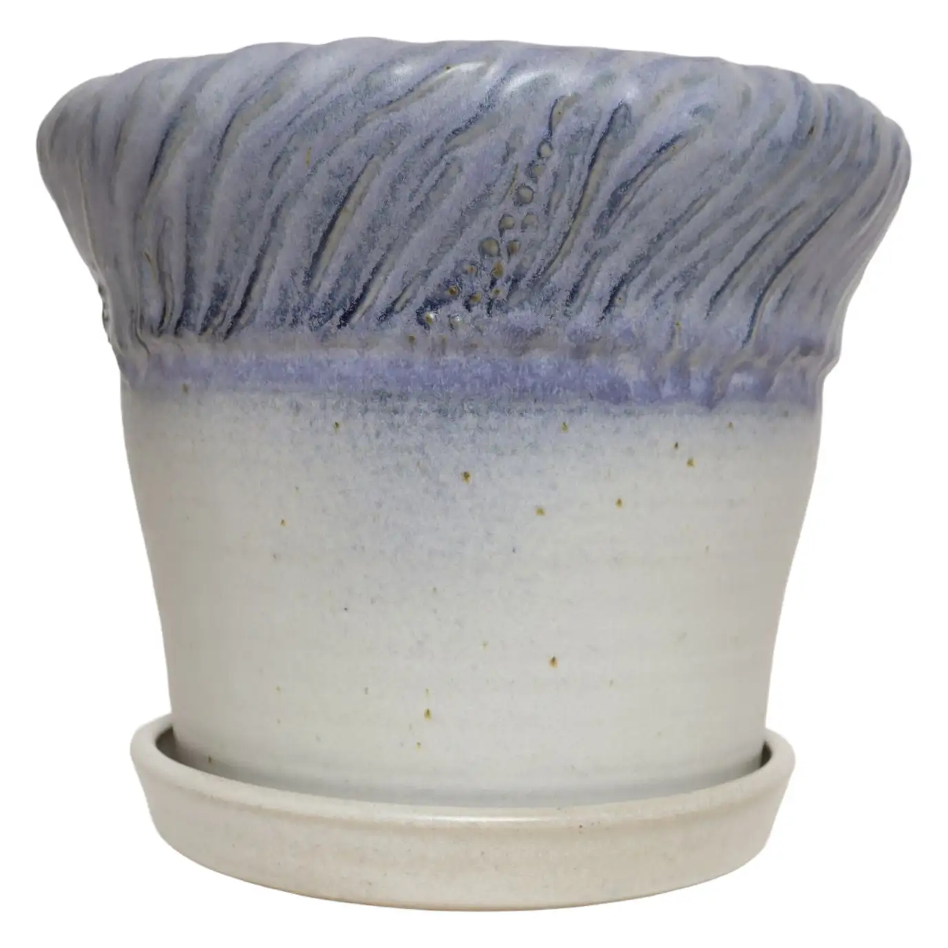 Studio ceramic planter with drainage hole and plate/saucer by ceramicist, Deanna Nichols (b. 1942-2017, Missouri).