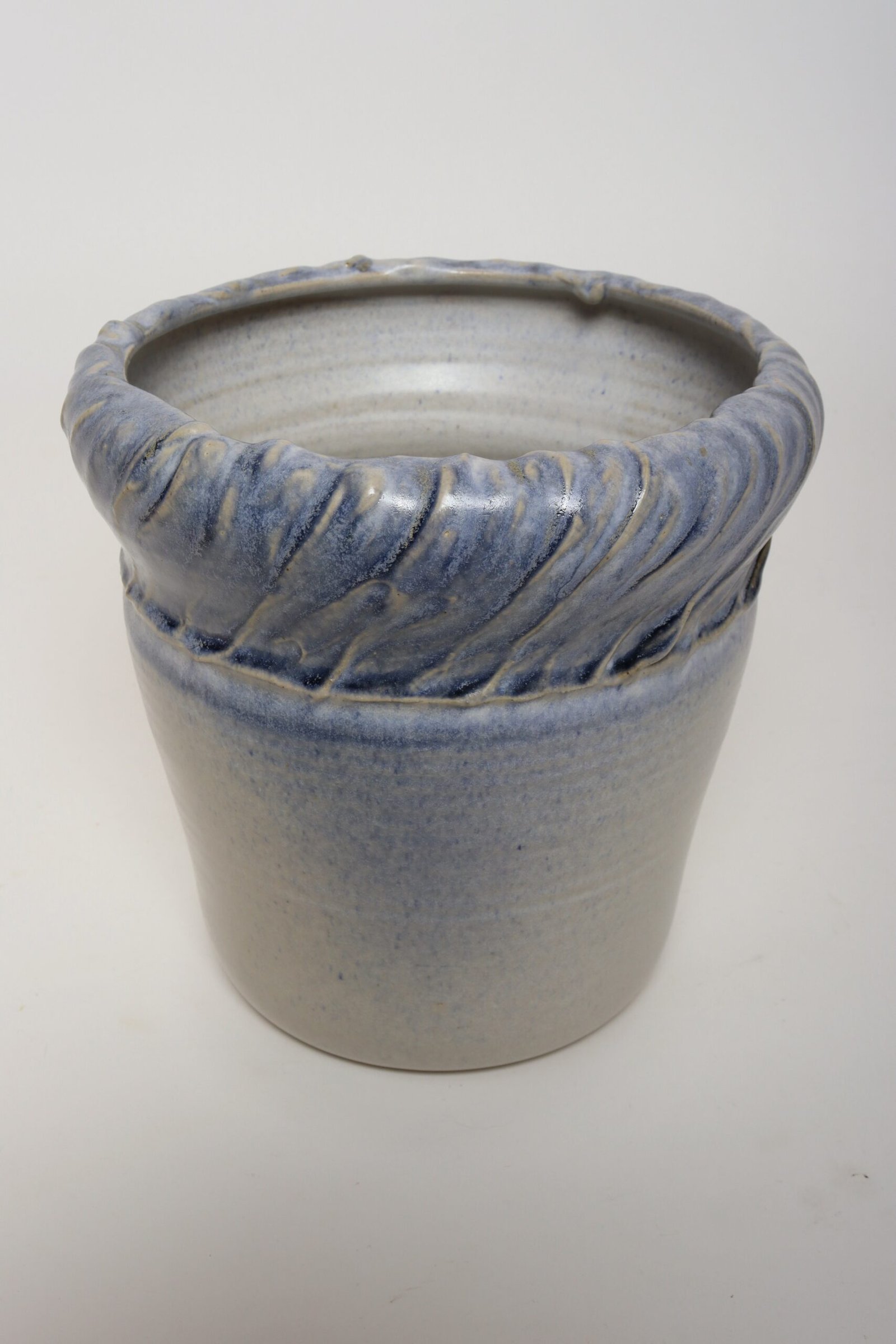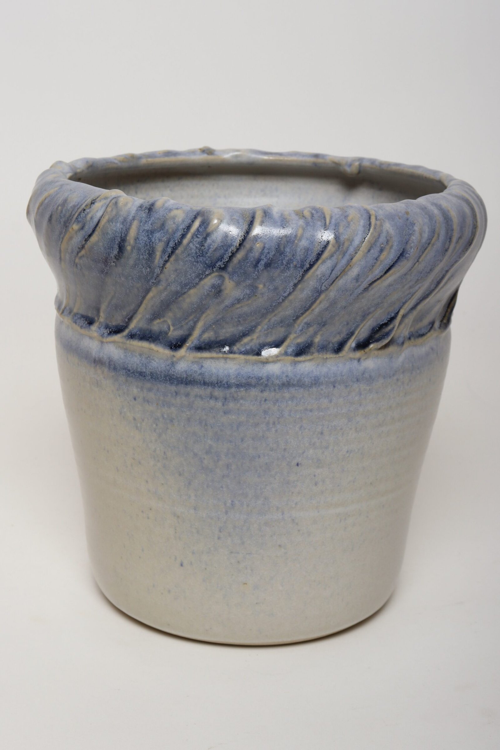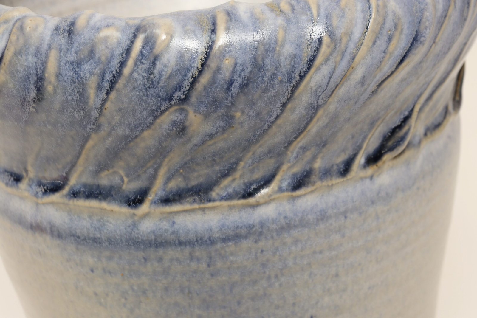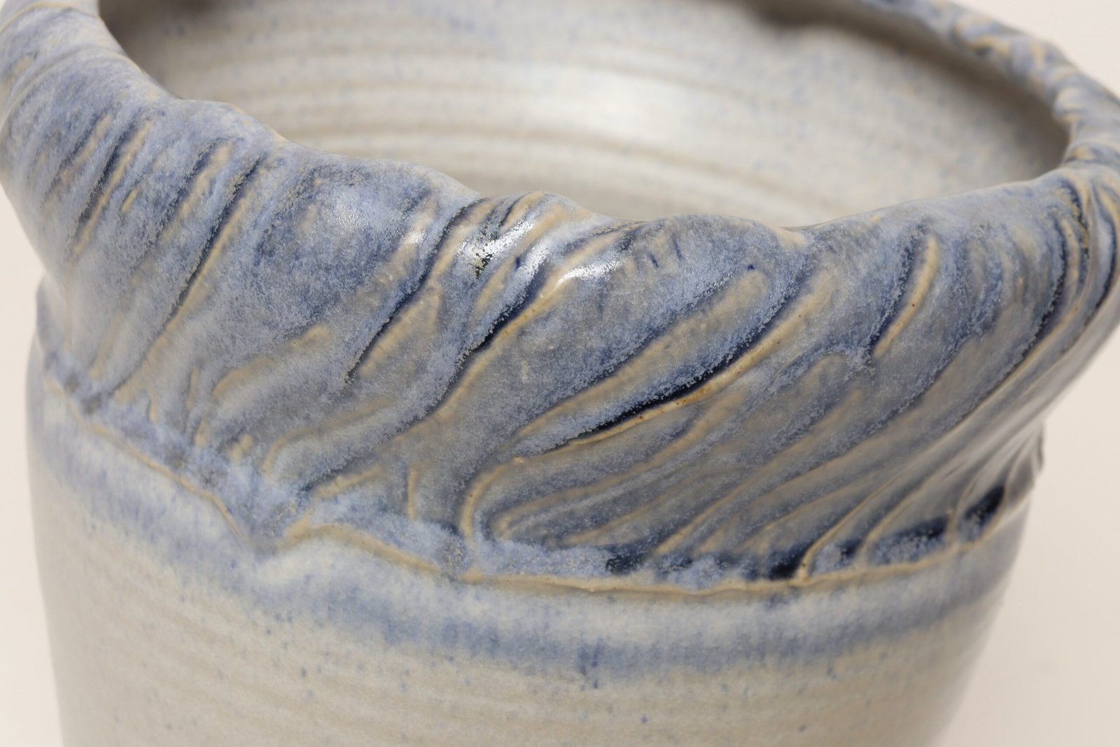 Vintage Navy and Pale Blue Incised Studio Ceramic Planter by Deanna Nichols