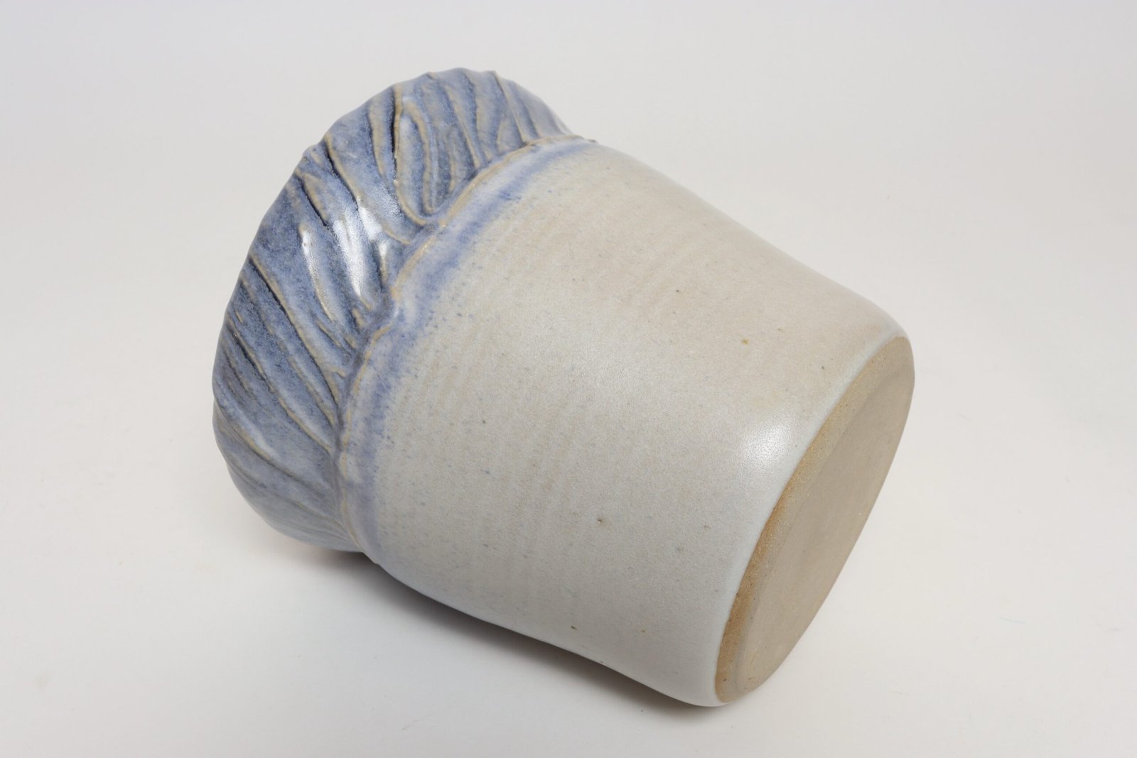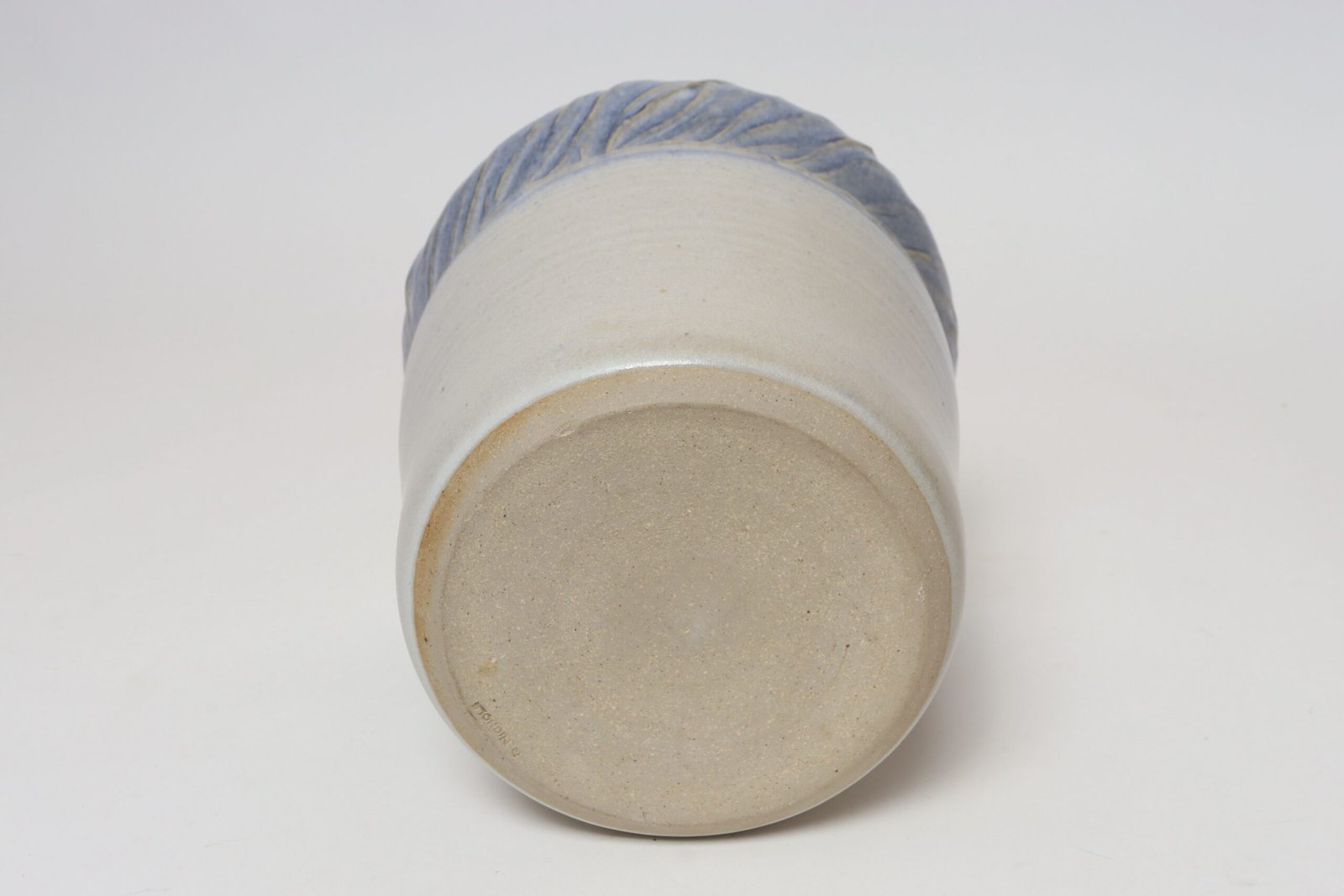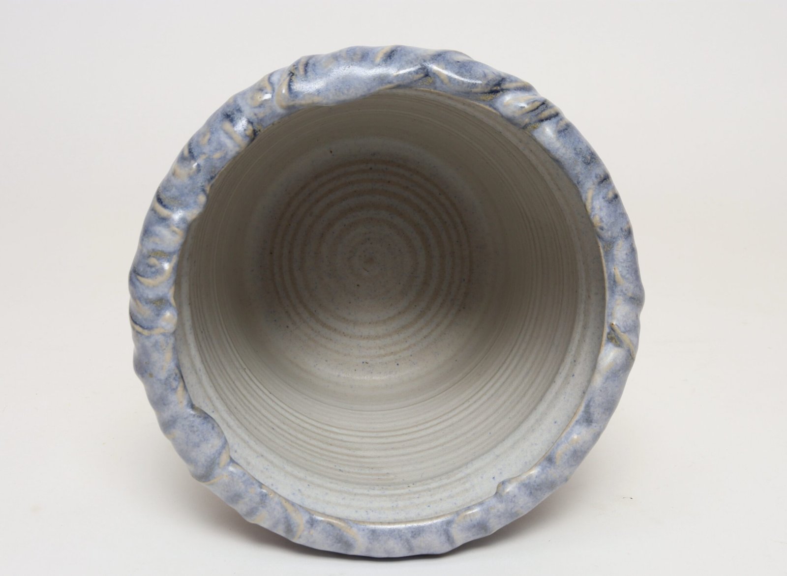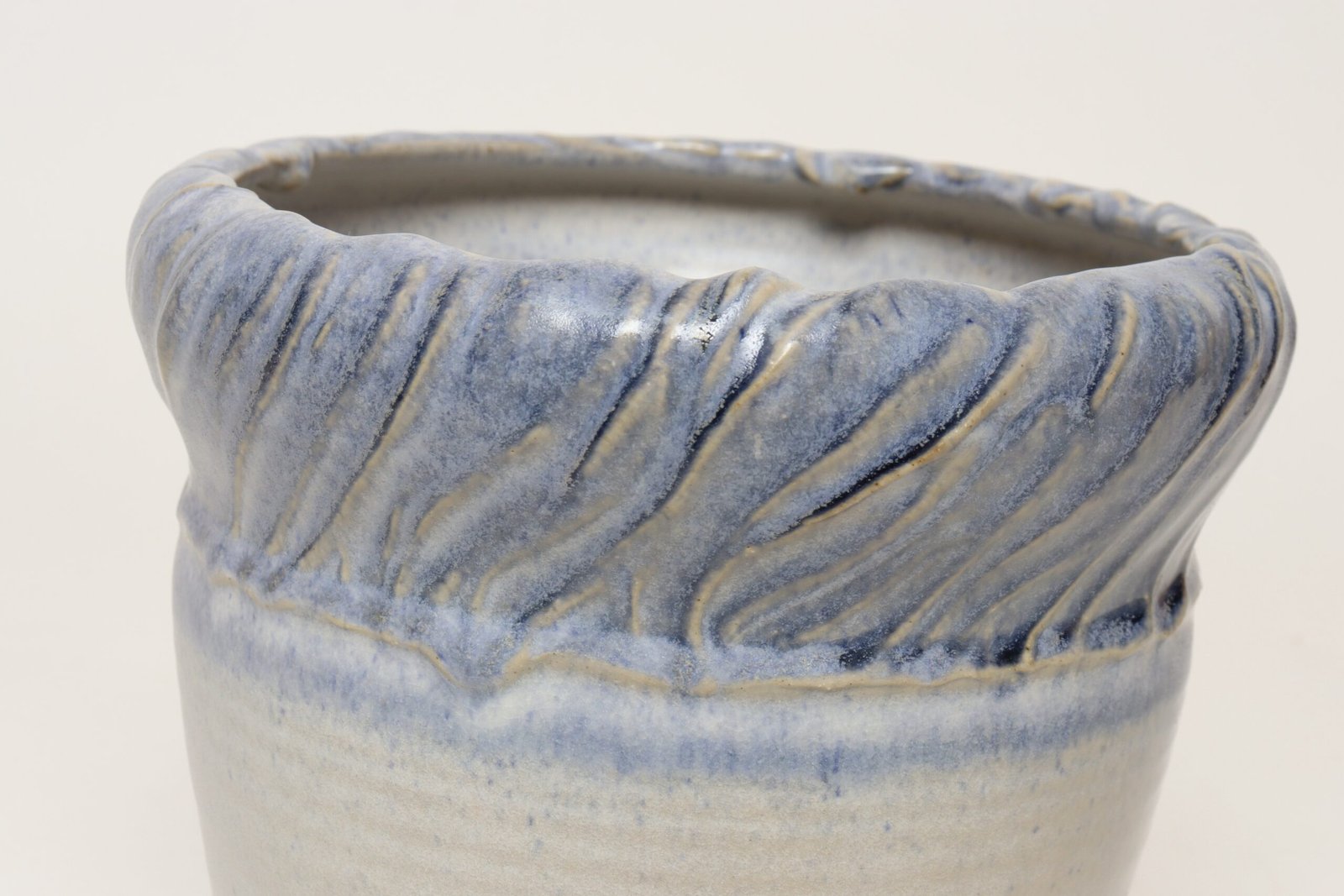 Vintage Navy and Pale Blue Incised Studio Ceramic Planter by Deanna Nichols