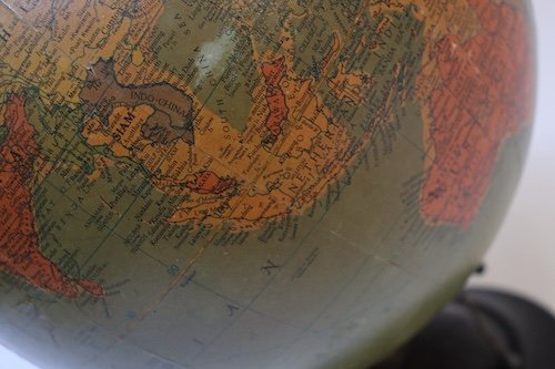 Diminutive 10″ diameter Replogle Precision Globe circa late 1952 / early 1953 (Israel, Korea, and Ethiopia are present).