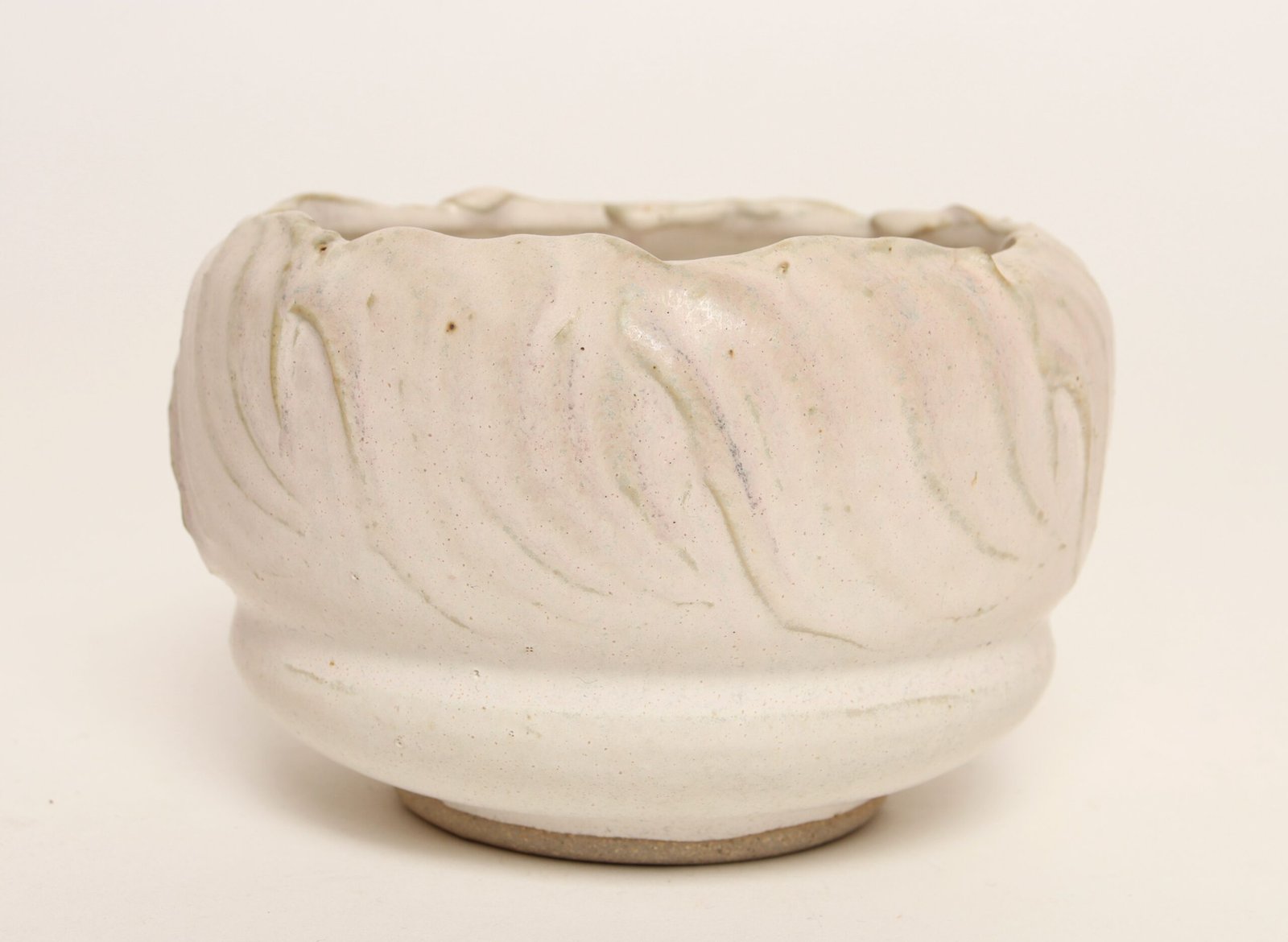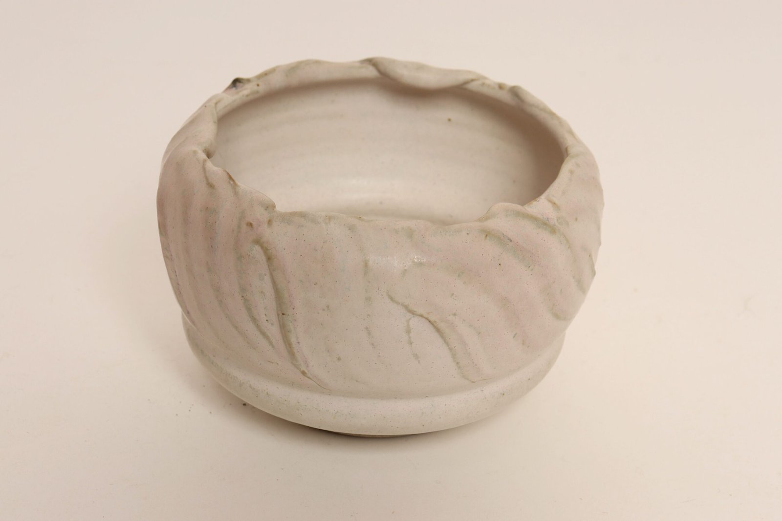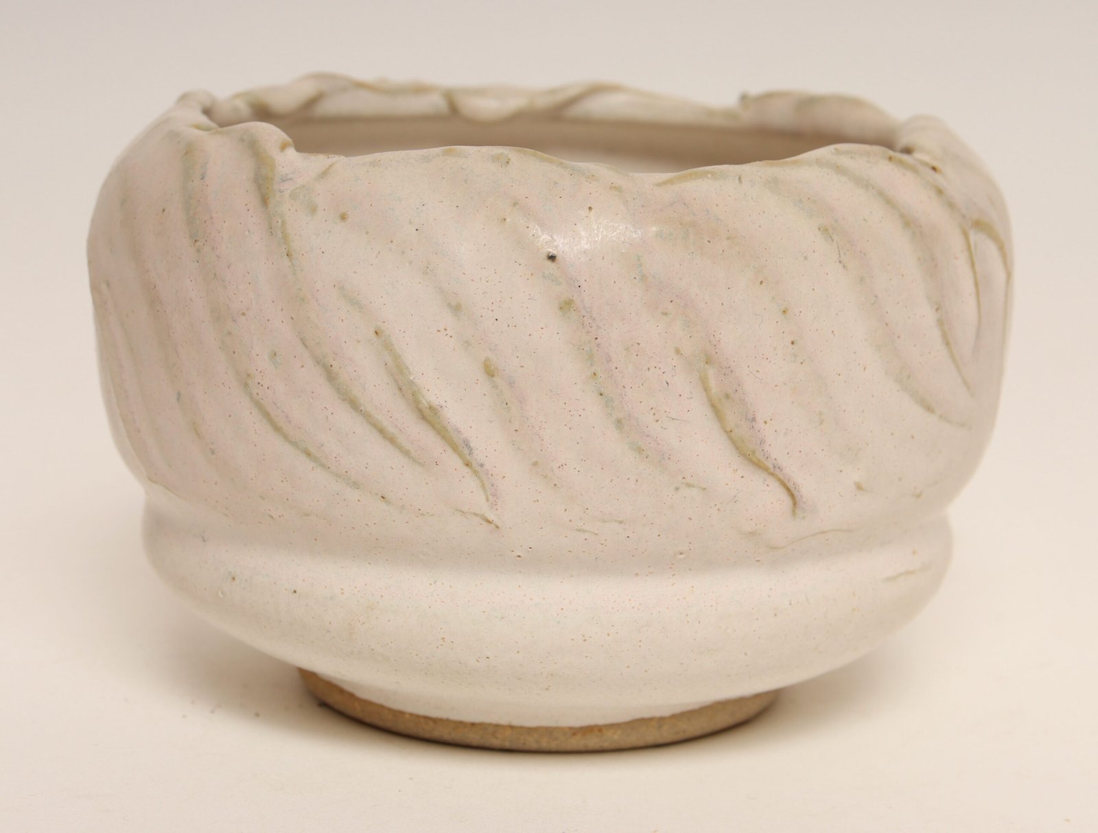 Vintage Pink Matte Glazed Incised Ceramic Vase / Planter by Deanna Nichols