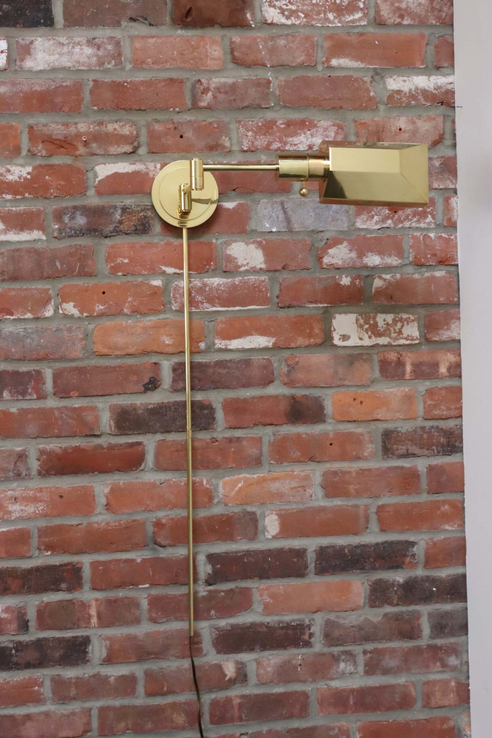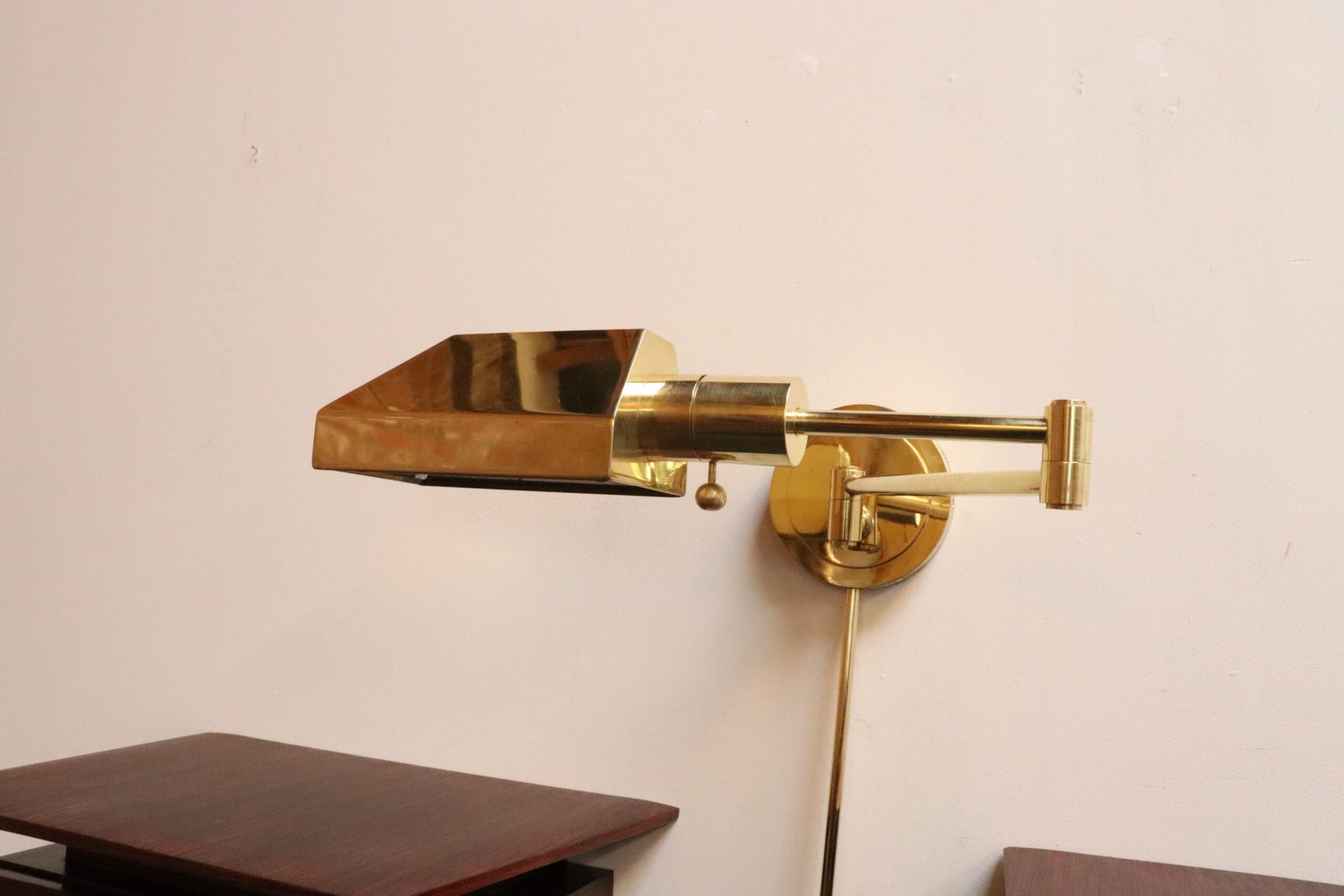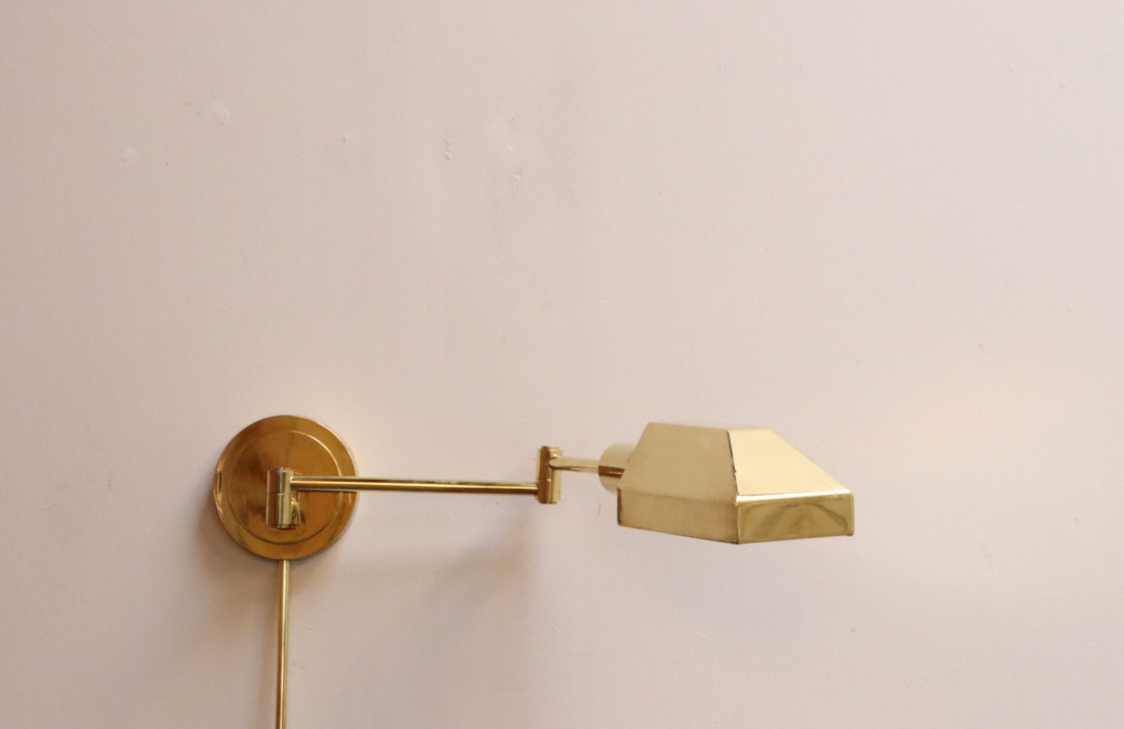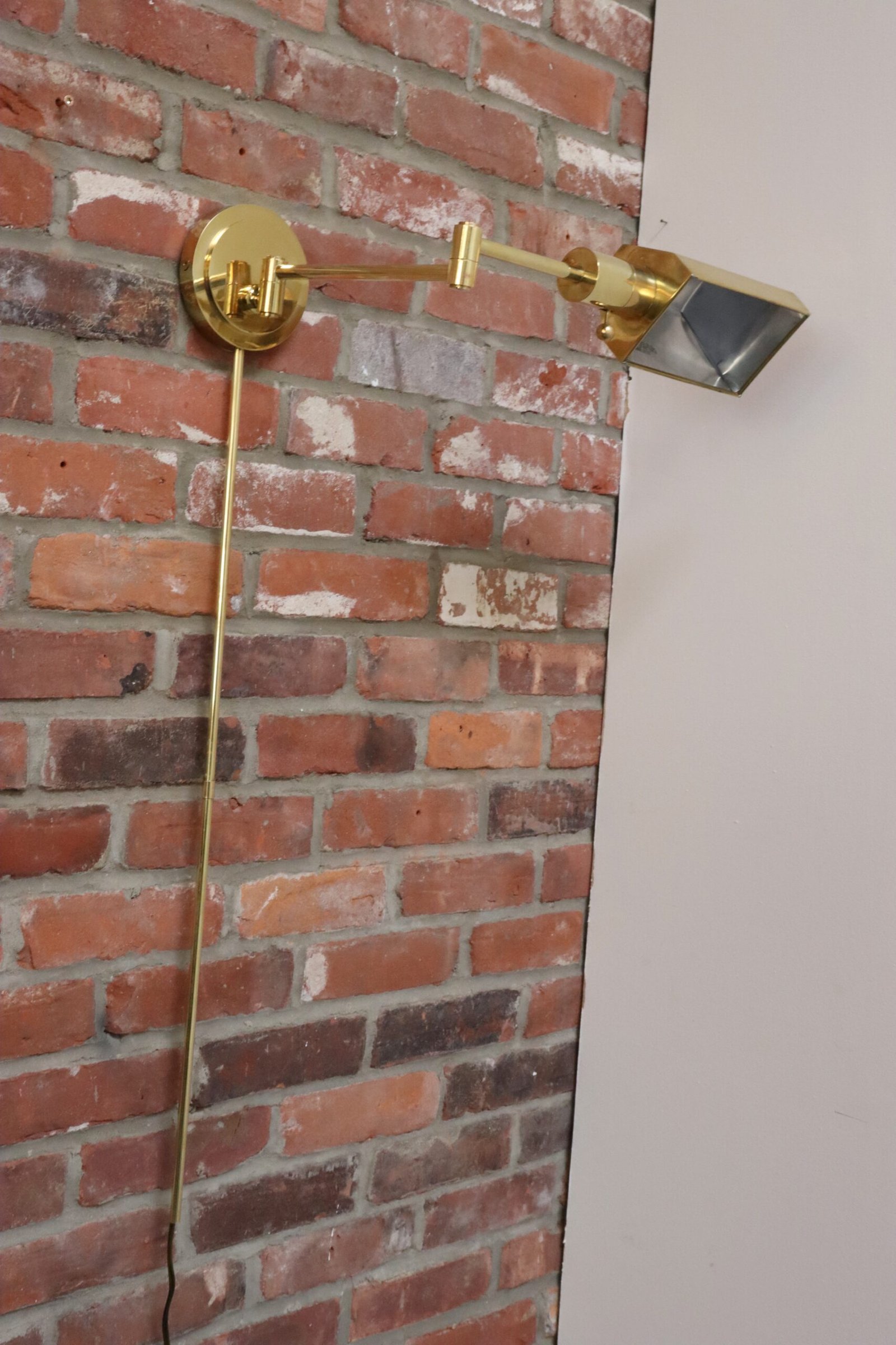 Vintage Polished Brass Swing Arm Wall Lamp with Swiveling Shade by Chapman