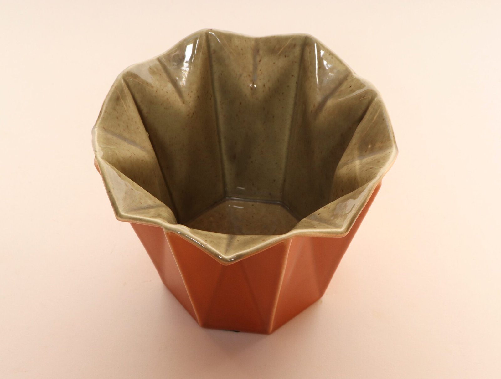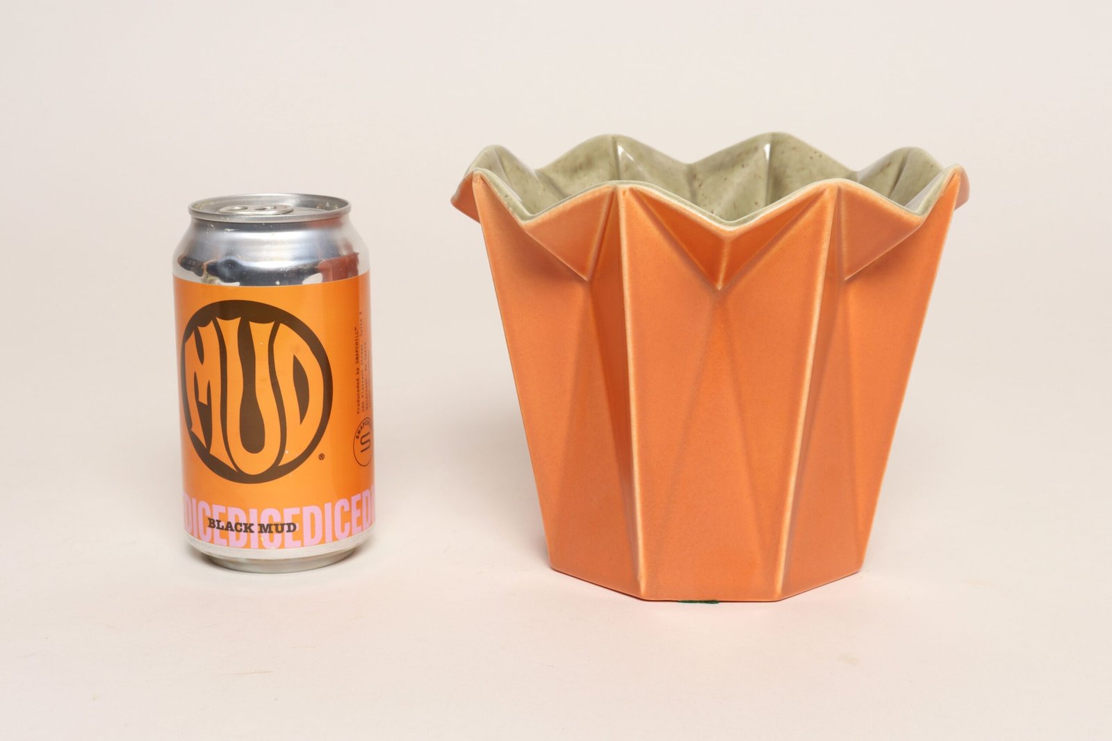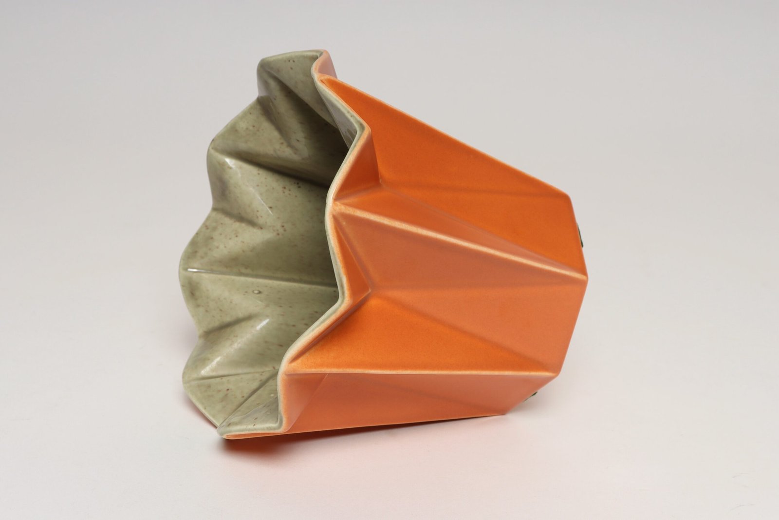 Vintage “Prismatique” Orange and Green Vase by Belle Kogan for Red Wing Pottery