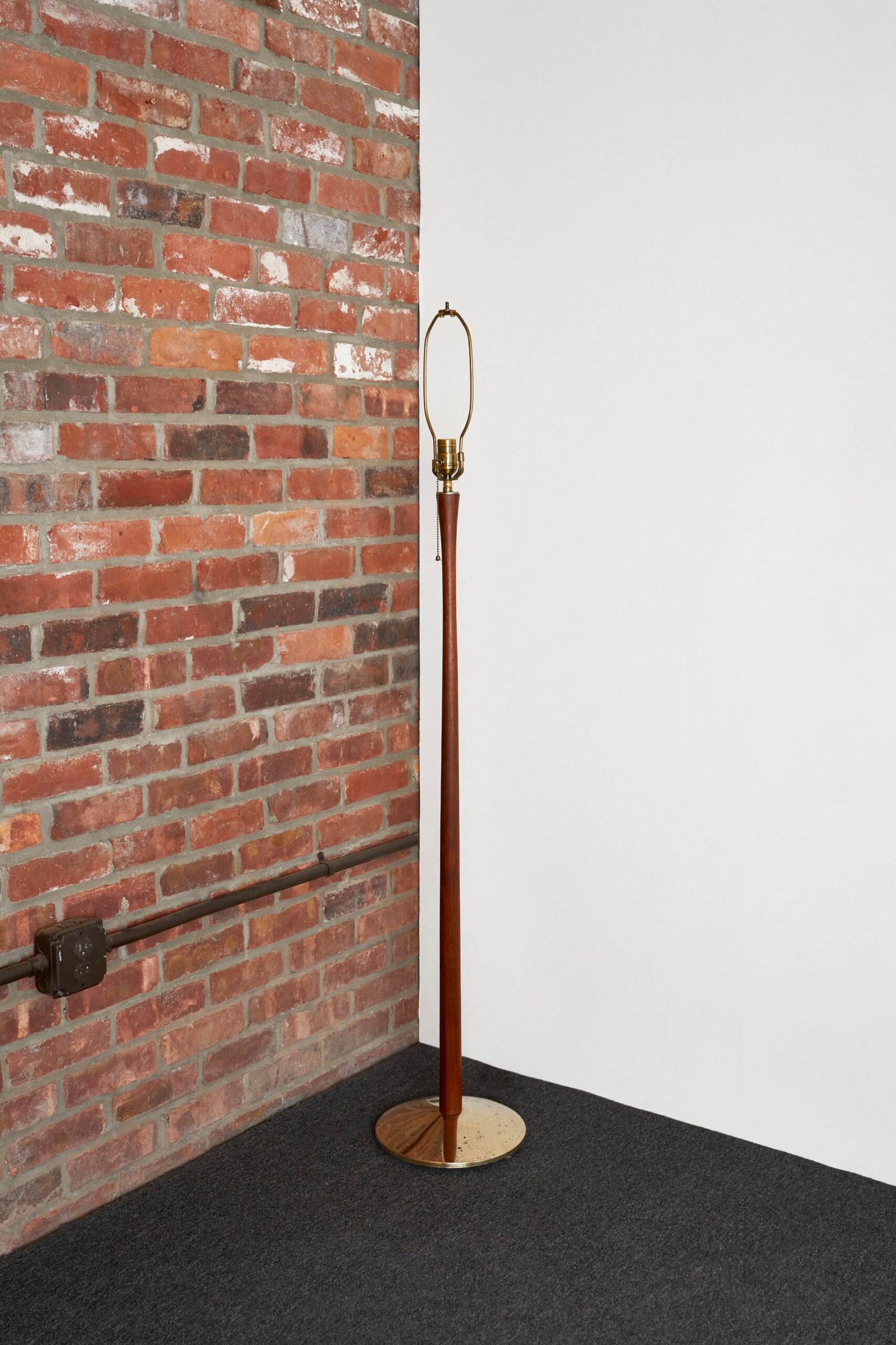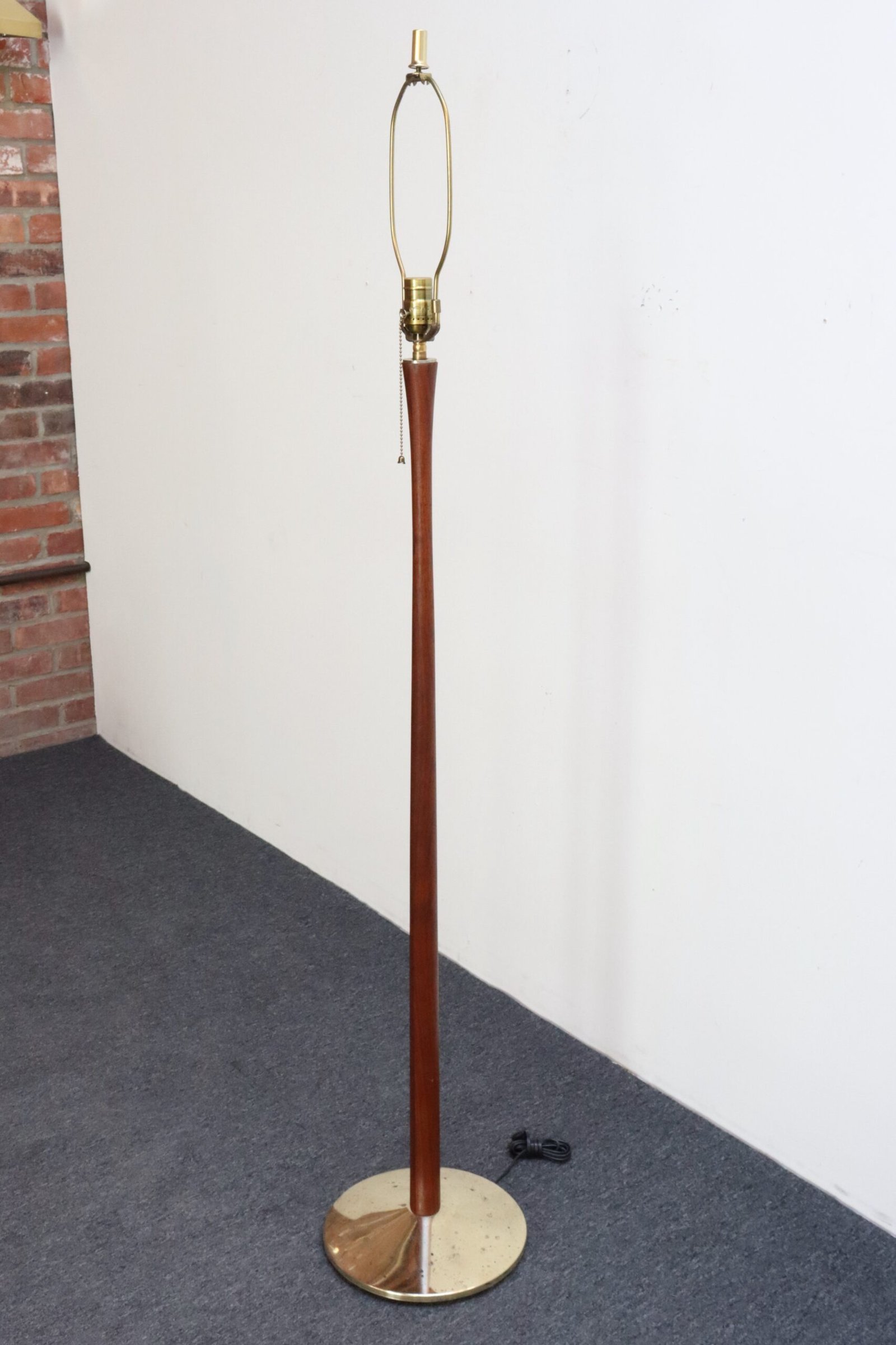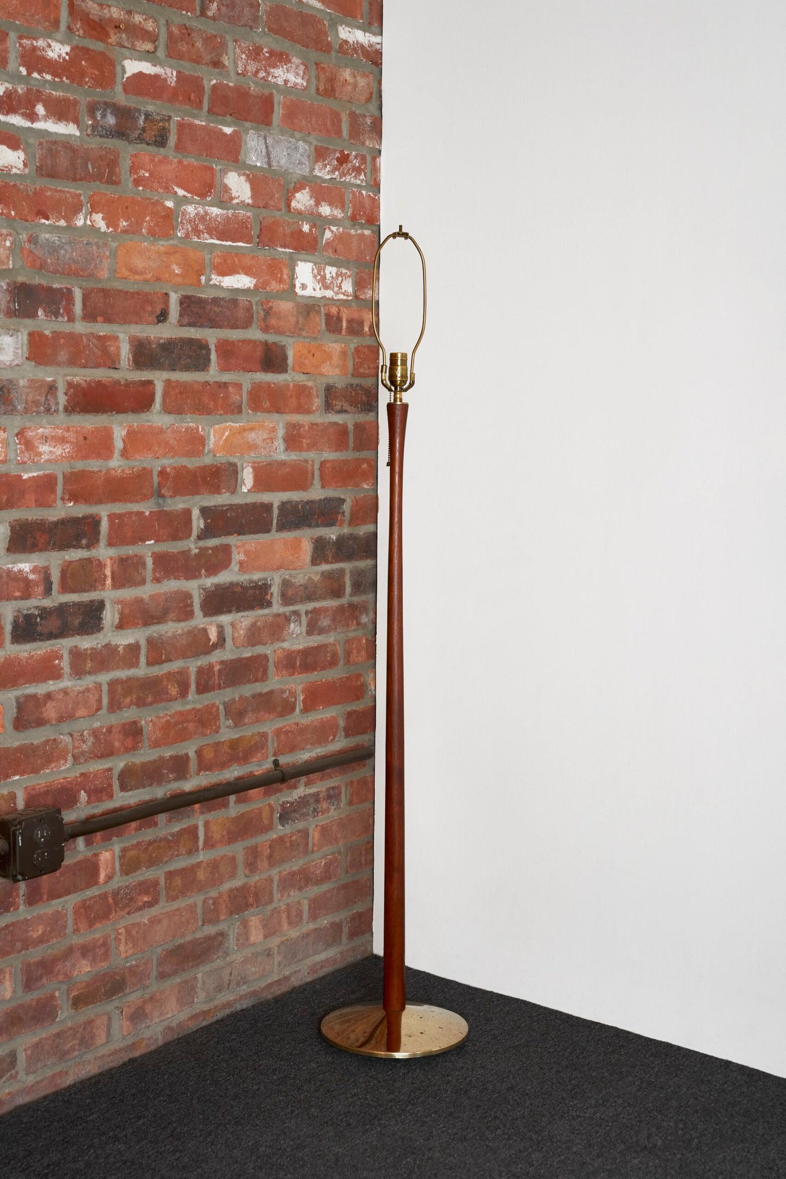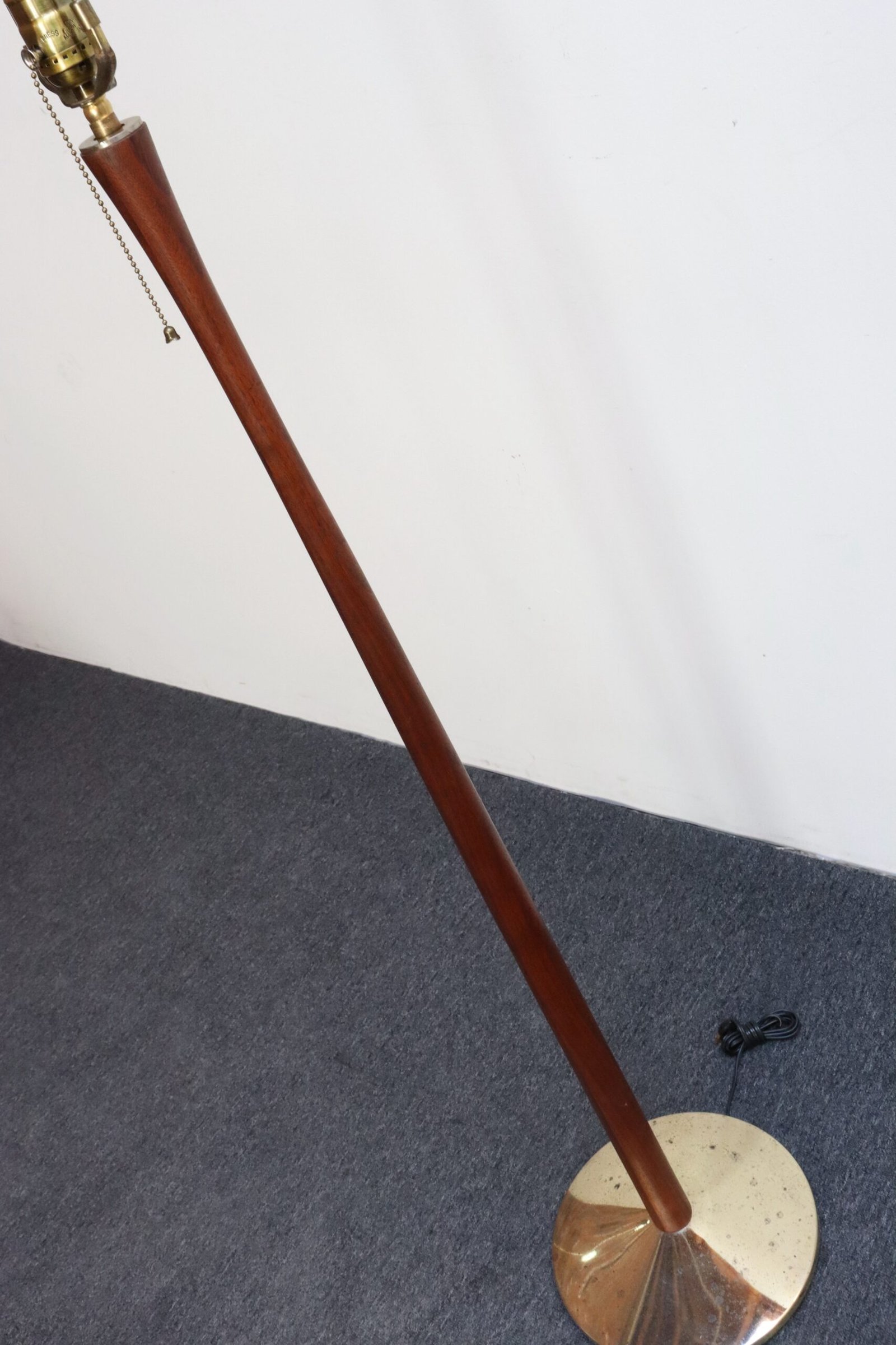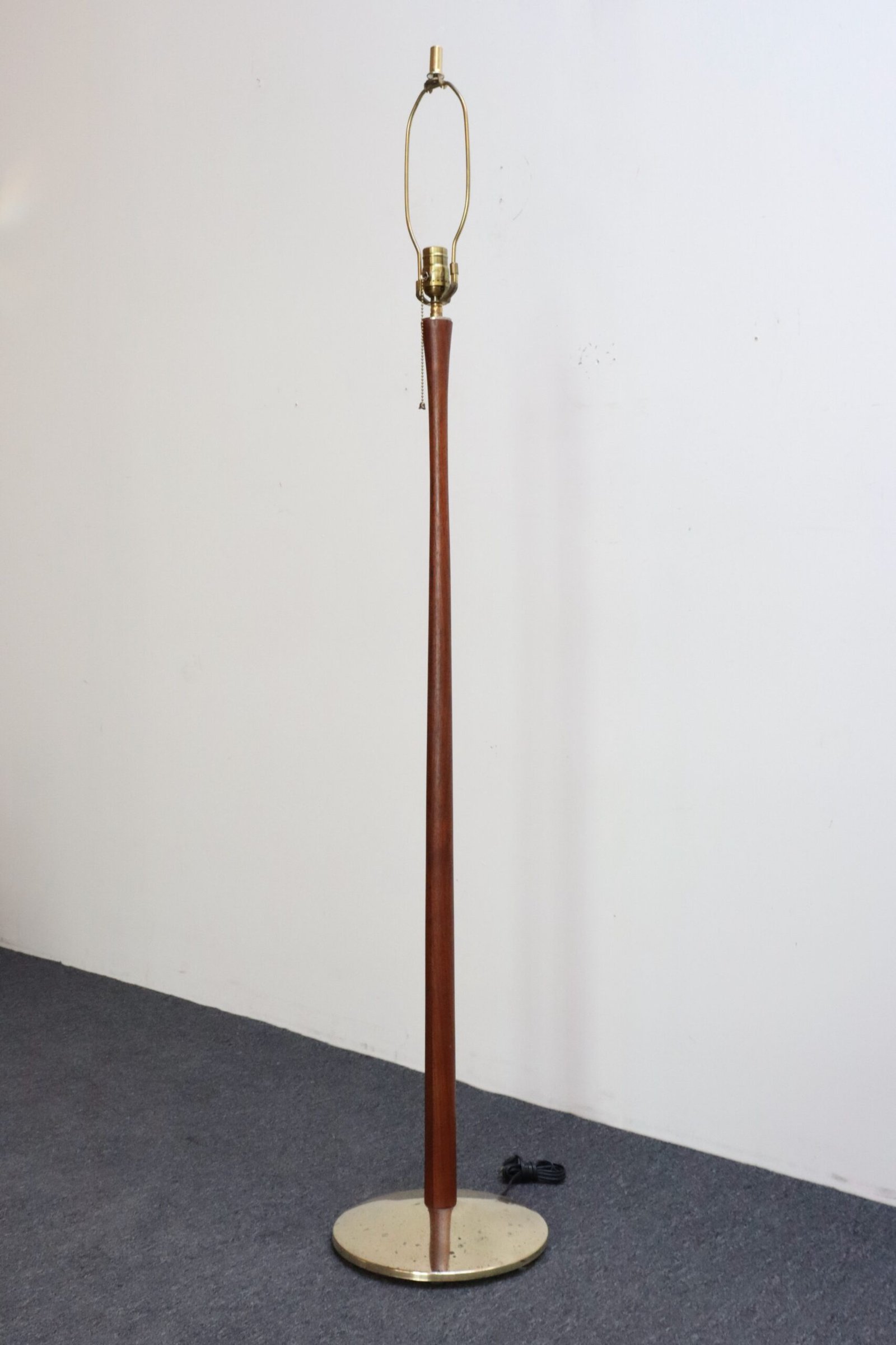 Vintage Scandinavian Sculptural Solid Teak and Brass Floor Lamp