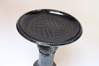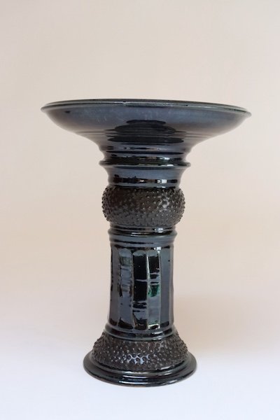 Multi-purpose ceramic pedestal (large votive holder, cake server, footed catch-all) by ceramicist, Deanna Nichols (b. 1942-2017, Missouri).