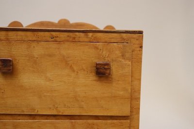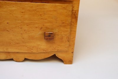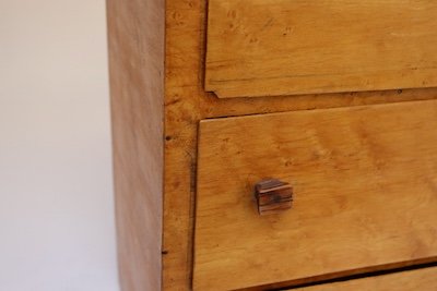 Crude in execution with some uneven drawer edges and asymmetrical pulls. Potentially an apprentice practice piece.