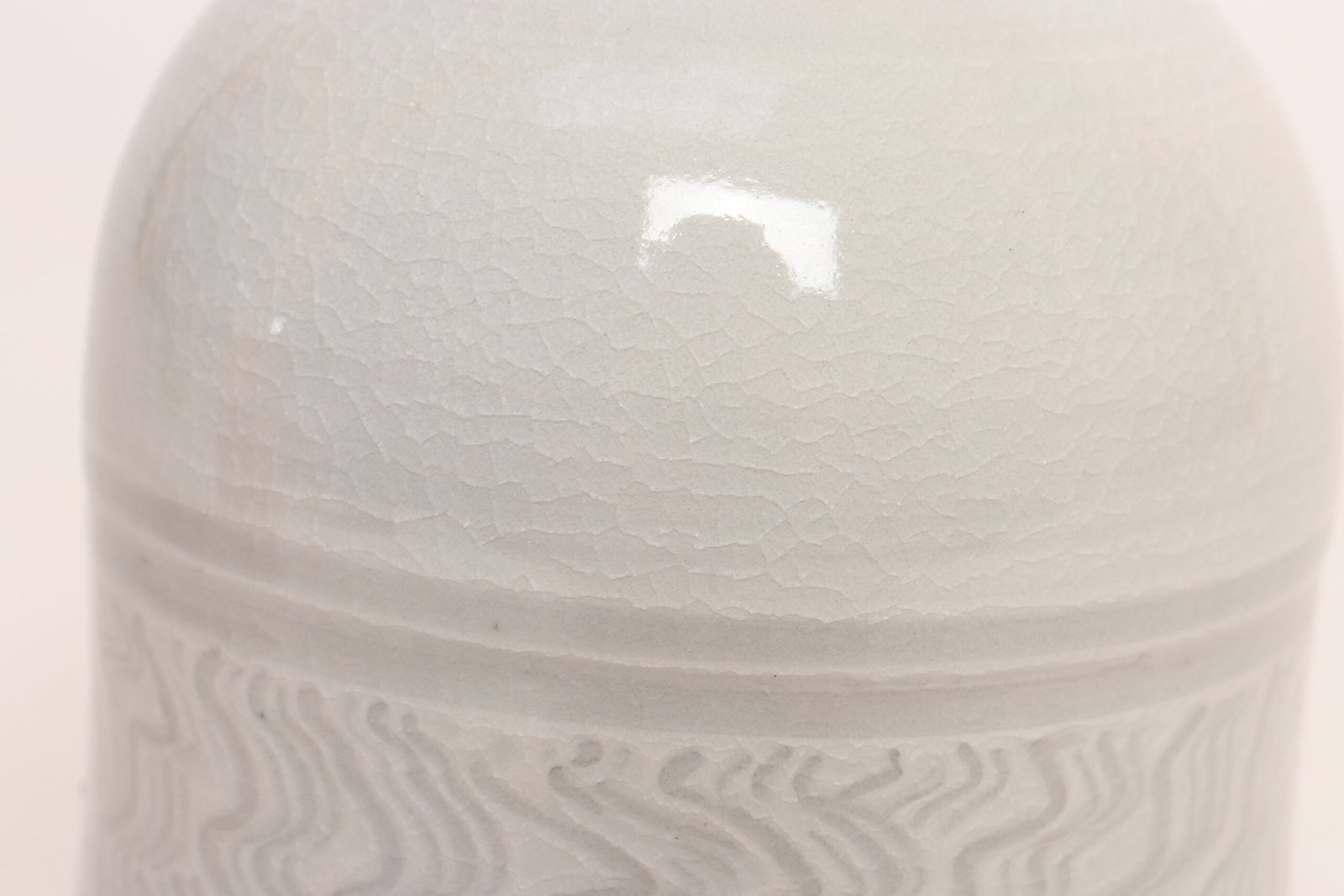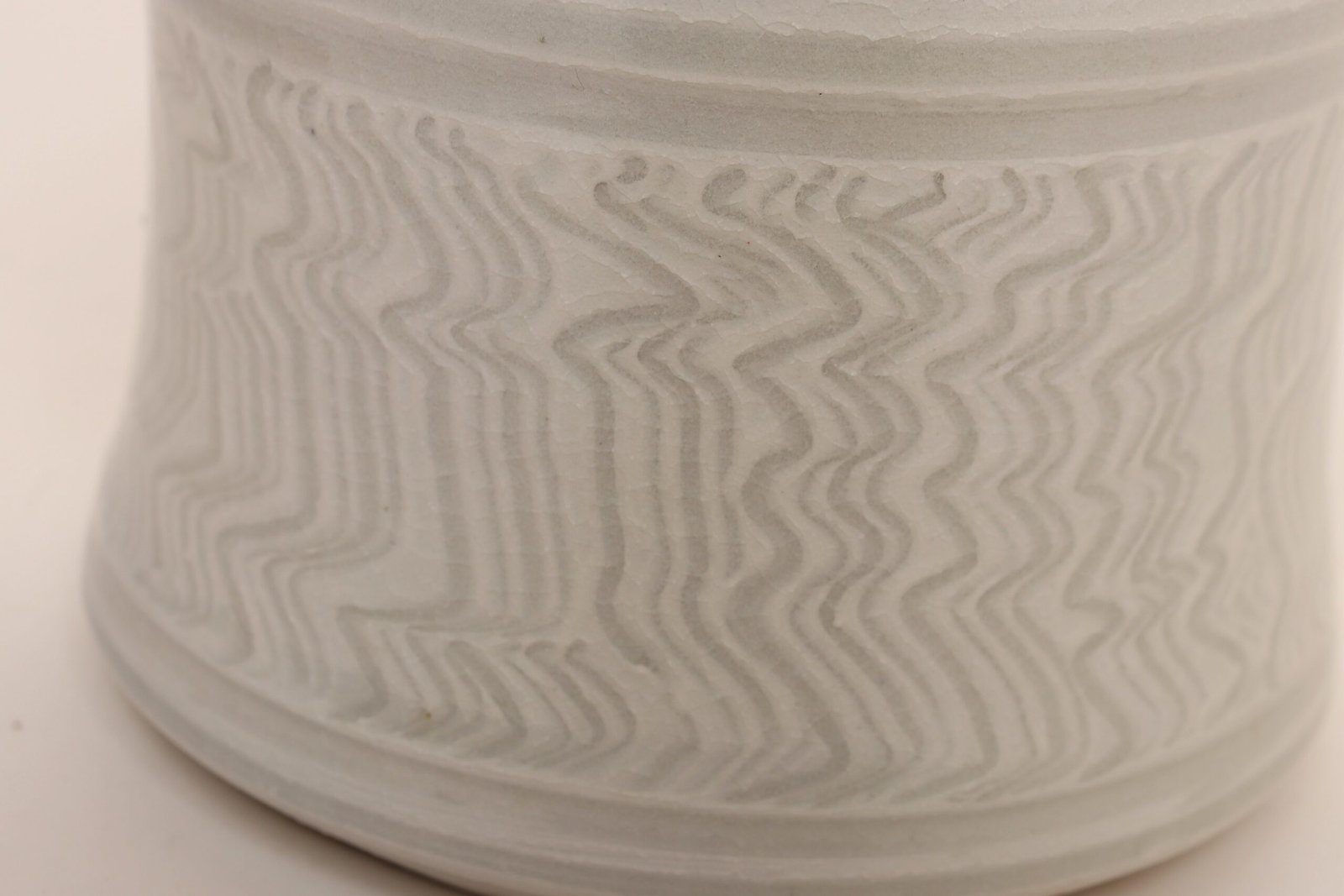 Vintage White Glazed Studio Ceramic Vase with Sgraffito Detail by Deanna Nichols